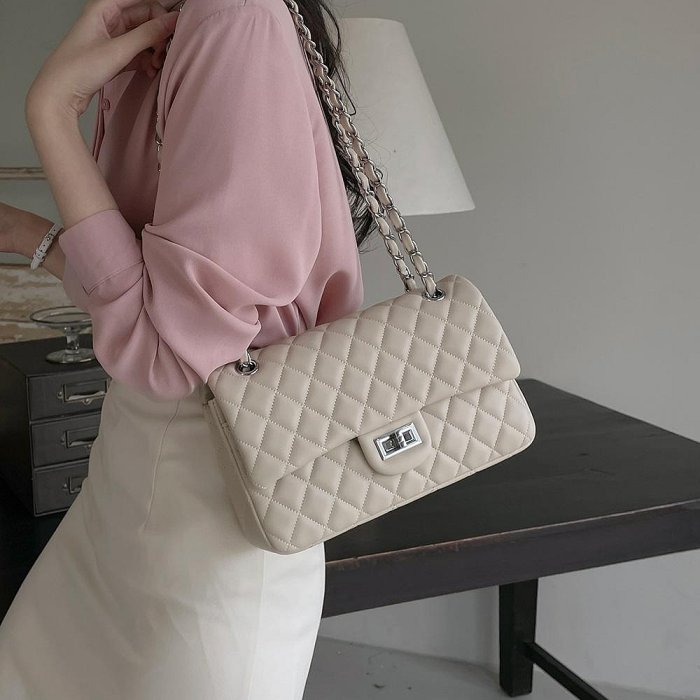 優寶購物《ubao.Tw》特貨品商城,黑貓宅配,取貨付款,正韓代購 dholic.1825488 菱格紋縫線金釦翻蓋銀鍊手提包/小香包/腋下包/復古包 25MAY | Yahoo拍賣