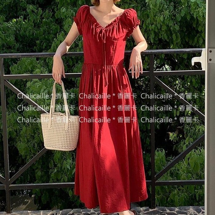 優寶購物《ubao.Tw》特貨品商城,黑貓宅配,取貨付款,Chalicaille * 香麗卡。正韓。H559荷葉胸口前綁帶洋裝 紅 白 淺藍 深藍 fancyfancy 花猴 直播款 | Yahoo拍賣