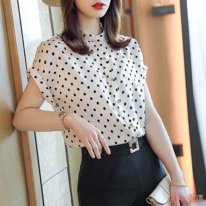 優寶購物《ubao.Tw》特貨品商城,黑貓宅配,取貨付款,波點雪紡衫立領襯衫女裝2025新款夏季短袖時尚女神襯衫短袖上衣女-靚莎優選 | Yahoo拍賣