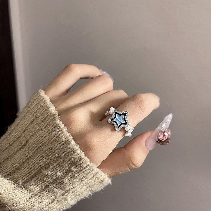 優寶購物《ubao.Tw》特貨品商城,黑貓宅配,取貨付款,(小燕子日韓小物) 【1678】星星珍珠笑臉銀色戒指 ins網紅個性鑲鑽食指戒 不規則開口藍色幸運星指環 | Yahoo拍賣