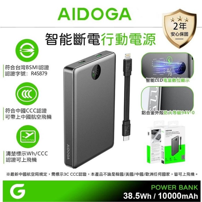 優寶購物《ubao.Tw》特貨品商城,黑貓宅配,取貨付款,AIDOGA 10000mAh 可上飛機 智能斷電行動電源 38.5Wh 台灣BSMI/中國CCC/歐美CE/FCC認證 | Yahoo拍賣