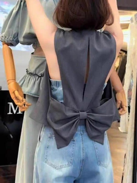 優寶購物《ubao.Tw》特貨品商城,黑貓宅配,取貨付款,2025超好看 黑色灰色背後大蝴蝶結無袖背心西裝背心 | Yahoo拍賣