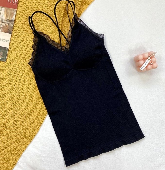 優寶購物《ubao.Tw》特貨品商城,黑貓宅配,取貨付款,DQ 50604 新款蕾絲拼接露背細肩帶背心 帶胸墊 加厚胸墊 防走光 免穿內衣 | Yahoo拍賣