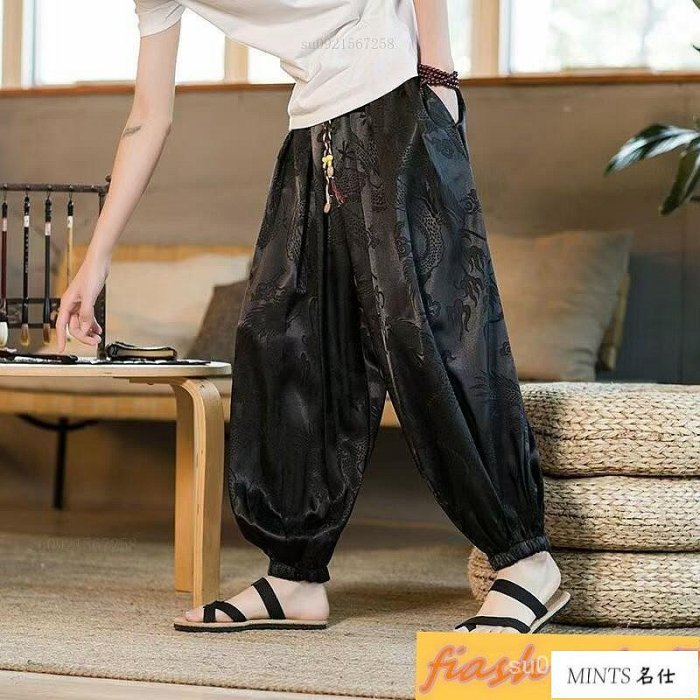 優寶購物《ubao.Tw》特貨品商城,黑貓宅配,取貨付款,下殺⚡️oversize褲子男大碼冰絲闊腿褲中國風龍紋暗印肥佬蘿卜九分燈籠褲90113ya-名仕男裝 | Yahoo拍賣