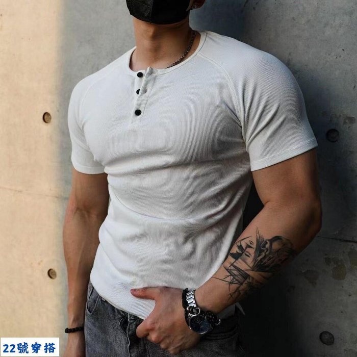 優寶購物《ubao.Tw》特貨品商城,黑貓宅配,取貨付款,亨美式男士短袖t恤重磅亨利領t恤衫短袖螺紋復古大碼男裝POLO衫-22號穿搭 | Yahoo拍賣