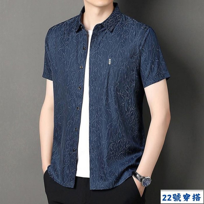 優寶購物《ubao.Tw》特貨品商城,黑貓宅配,取貨付款,男裝 大尺碼【棉麻】男士短袖襯衫2025夏季新款提花翻領襯衣中年休閒百搭上衣爸爸男裝-22號穿搭 | Yahoo拍賣