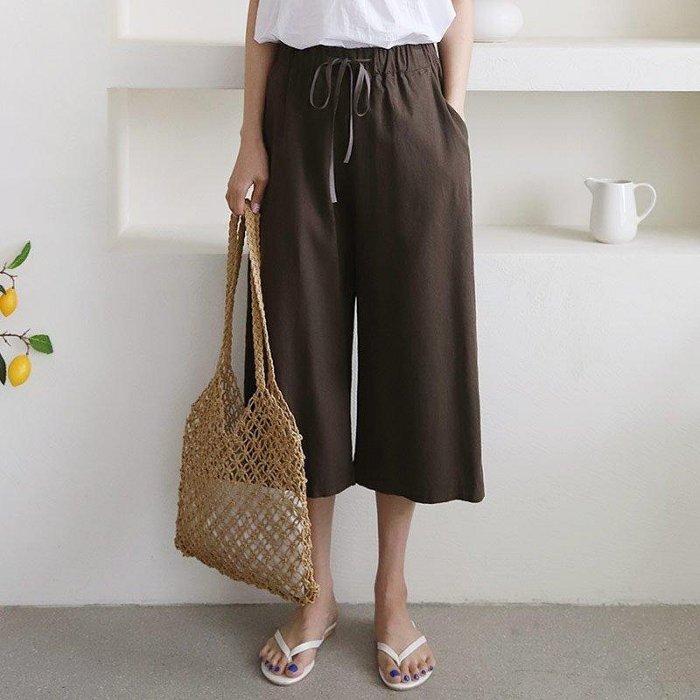 優寶購物《ubao.Tw》特貨品商城,黑貓宅配,取貨付款,Forever Kids 正韓 質感休閒 抽繩棉麻八分褲 寬褲【A67228】韓國代購 | Yahoo拍賣