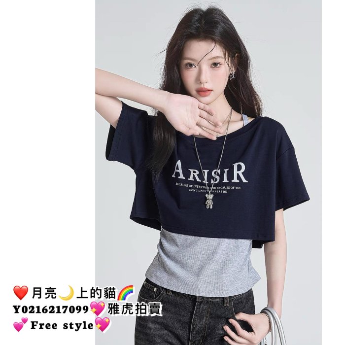 優寶購物《ubao.Tw》特貨品商城,黑貓宅配,取貨付款,❤月亮上の貓❤絕美甜辣出街~上身超美や好品質~夏百搭の時尚高級感字母印花設計舒適顯瘦短款短袖T卹+美背背心吊帶兩件套 超好看小眾設計感顯瘦別緻漂亮兩件式上衣 | Yahoo拍賣