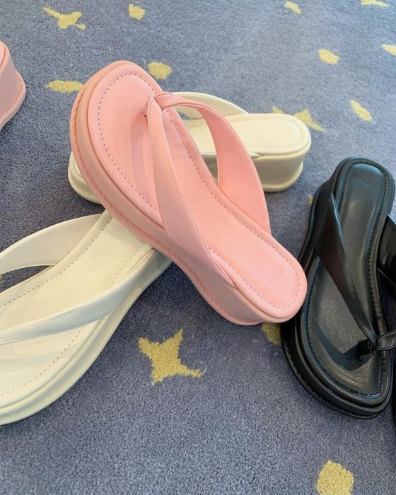 優寶購物《ubao.Tw》特貨品商城,黑貓宅配,取貨付款,極輕便奶油色楔型夾腳鞋 #6612 🇰🇷Sylvie韓國連線 | Yahoo拍賣
