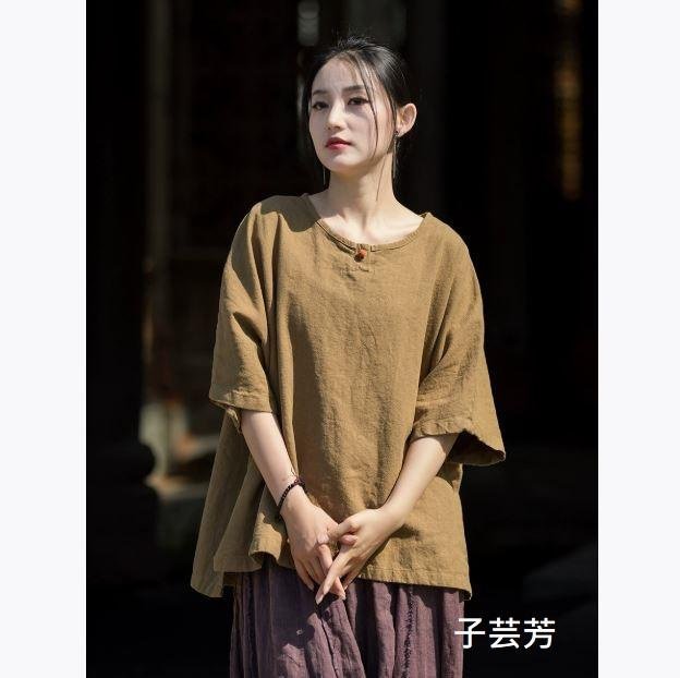 優寶購物《ubao.Tw》特貨品商城,黑貓宅配,取貨付款,【子芸芳】夏棉麻新品原創全新中式改良套頭衫苧麻砂洗盤扣短袖T恤衫 | Yahoo拍賣