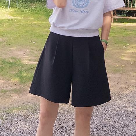 優寶購物《ubao.Tw》特貨品商城,黑貓宅配,取貨付款,Bellee 正韓 不皺面料彈性十足A字寬版鬆緊西裝短褲 F/L (3色) 【0611-33】 | Yahoo拍賣