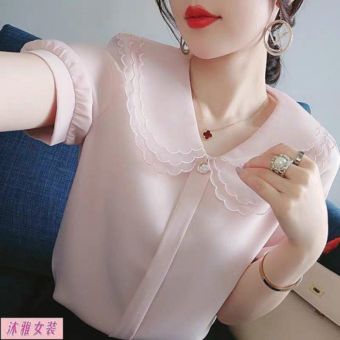 優寶購物《ubao.Tw》特貨品商城,黑貓宅配,取貨付款,限時優惠❤️短袖雪紡襯衫女 2025夏季新款 韓版學院風氣質 洋氣減齡娃娃領襯衣 百搭潮流短袖上衣 | Yahoo拍賣
