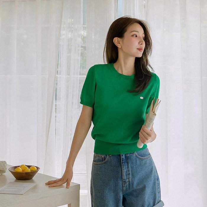 優寶購物《ubao.Tw》特貨品商城,黑貓宅配,取貨付款,Bellee 正韓 小金標圓領短袖柔軟薄針織上衣 (10色) 【0616-19】 | Yahoo拍賣