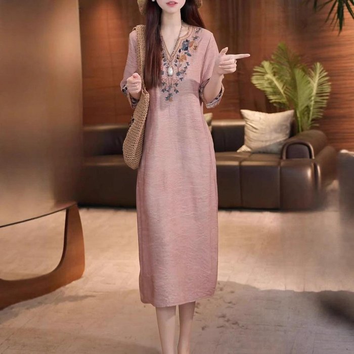 優寶購物《ubao.Tw》特貨品商城,黑貓宅配,取貨付款,大碼棉麻 舒適 洋裝高檔時尚氣質重工刺繡大碼連衣裙女春夏季新款寬松顯瘦長裙子 | Yahoo拍賣