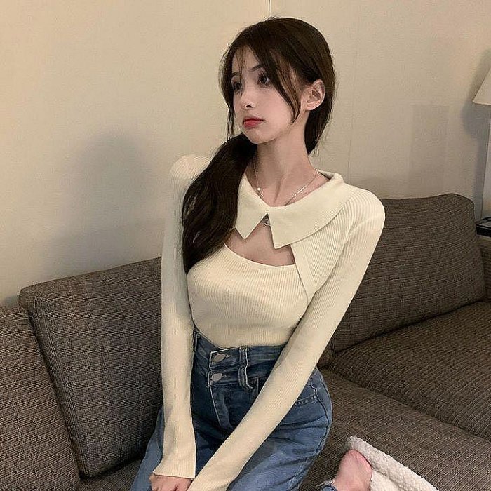 優寶購物《ubao.Tw》特貨品商城,黑貓宅配,取貨付款,設計感鏤空 小心機長袖 針織打底衫 女緊身顯瘦 小眾上衣 潮冬季 假兩件-悅享樂購 | Yahoo拍賣