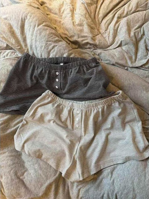 優寶購物《ubao.Tw》特貨品商城,黑貓宅配,取貨付款,2025居家褲夏季顯瘦顯腿長條紋三粒扣條紋短褲三分熱褲跑步運動 | Yahoo拍賣