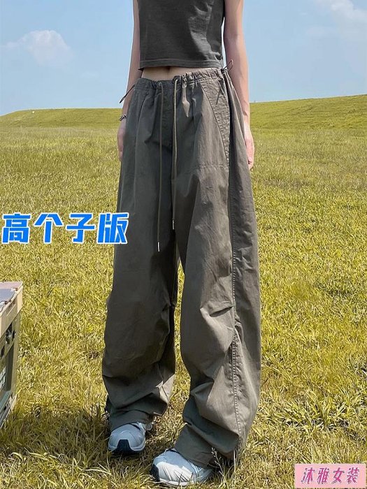 優寶購物《ubao.Tw》特貨品商城,黑貓宅配,取貨付款,夏季必備-美式復古速干傘兵工裝褲女酷颯風加長版高個子拖地闊腿褲夏季薄款 | Yahoo拍賣