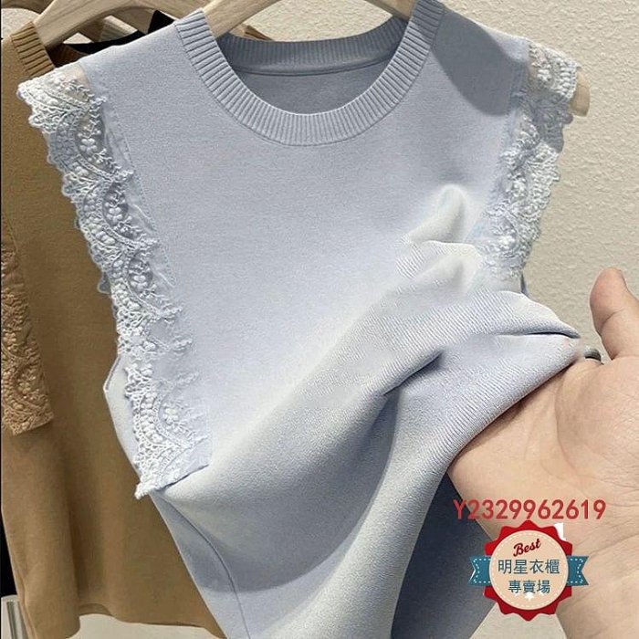 優寶購物《ubao.Tw》特貨品商城,黑貓宅配,取貨付款,明星衣櫃=復古無袖新款針織馬甲背心春季春秋慵懶洋氣上衣毛衣拼接高級蕾絲 | Yahoo拍賣