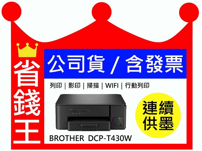 優寶購物《ubao.Tw》特貨品商城,黑貓宅配,取貨付款,Brother DCP-T430W【送摺疊手機架】多功能印表機《原廠連續供墨》 | Yahoo拍賣