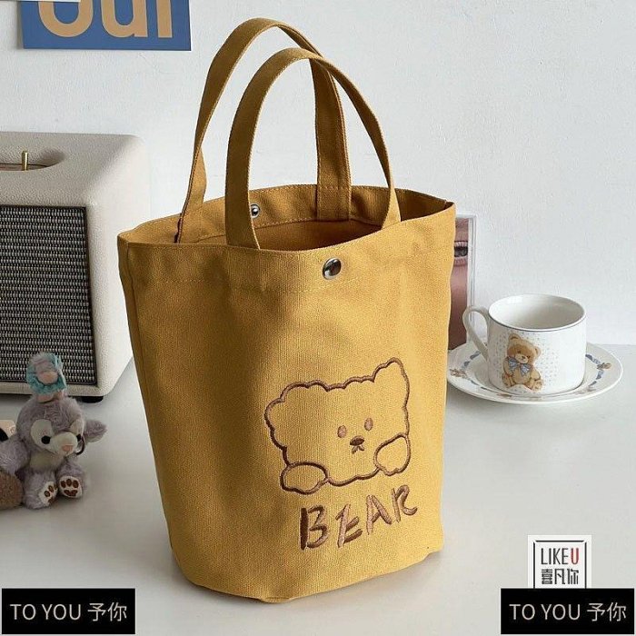 優寶購物《ubao.Tw》特貨品商城,黑貓宅配,取貨付款,刺繡小熊水桶型托特帆布包簡約百搭小容量手提便當餐盒女包-予你優選 | Yahoo拍賣