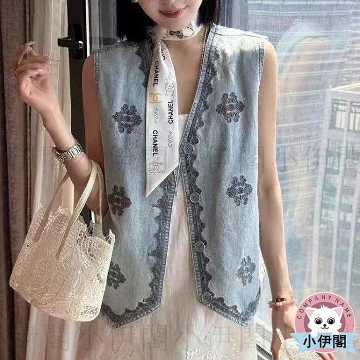 優寶購物《ubao.Tw》特貨品商城,黑貓宅配,取貨付款,小伊閣=歐洲站高級感V領刺繡單排扣牛仔馬夾女夏季新款時尚馬甲外套圓領背心*V領背心*荷葉領背心*連帽背心*馬甲背心*大尺寸背心*其他款式背心 | Yahoo拍賣