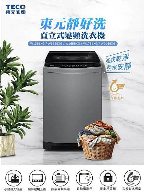 優寶購物《ubao.Tw》特貨品商城,黑貓宅配,取貨付款,易力購【 TECO 東元原廠正品全新】 單槽變頻洗衣機 W1758XG《17公斤》全省運送 | Yahoo拍賣