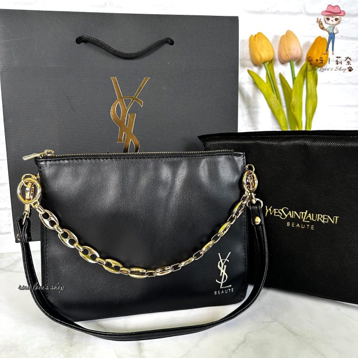 優寶購物《ubao.Tw》特貨品商城,黑貓宅配,取貨付款,YSL聖羅蘭VIP會員禮時尚氣質黑色皮革雙拉鏈化妝包改造款手提側背鏈條包(附專櫃紙袋) | Yahoo拍賣