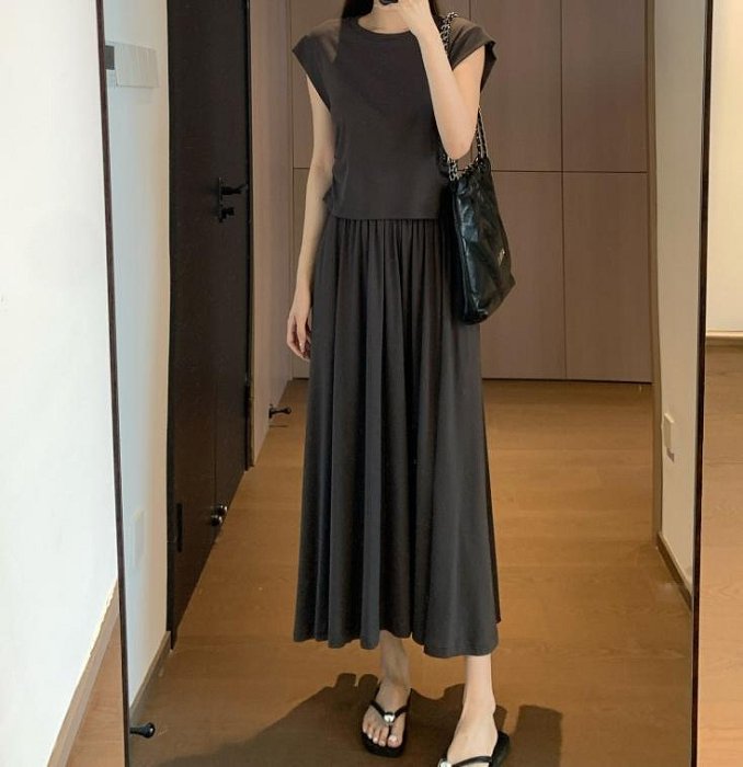 優寶購物《ubao.Tw》特貨品商城,黑貓宅配,取貨付款,*有間衣飾*2025夏季新品 懶人套裝~輕盈抗皺自然垂墜長裙/小飛袖上衣 | Yahoo拍賣
