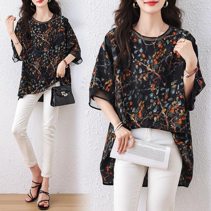 優寶購物《ubao.Tw》特貨品商城,黑貓宅配,取貨付款,大尺碼雪紡上衣 五分袖雪紡T恤上衣 大碼寬松短袖T恤女裝夏季2025新款洋氣襯衫顯瘦遮肉圓領休閑上衣 五分袖雪紡上衣 T恤 襯衫 FE021 | Yahoo拍賣