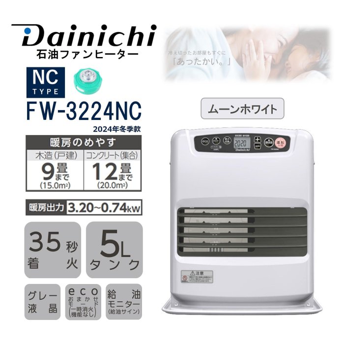 優寶購物《ubao.Tw》特貨品商城,黑貓宅配,取貨付款,【日本製】 【5-7坪數】 DAINICHI 大日 FW-3224NC 電子式 煤油電暖爐 2024年型號【月牙白】 | Yahoo拍賣