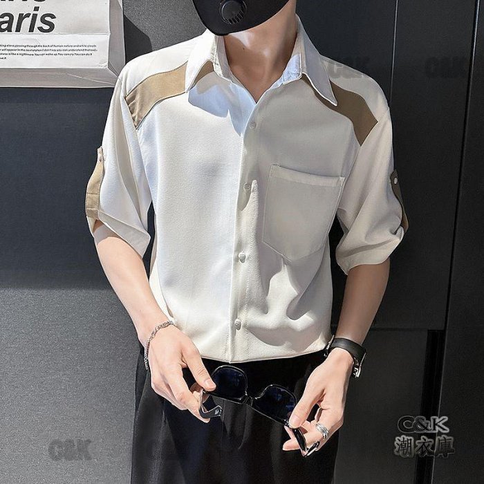 優寶購物《ubao.Tw》特貨品商城,黑貓宅配,取貨付款,潮衣庫『新款襯衫男潮牌潮流垂感七分袖夏季冰絲薄款痞帥大領中袖襯衣』襯衫短袖T恤POLO衫男上衣 | Yahoo拍賣