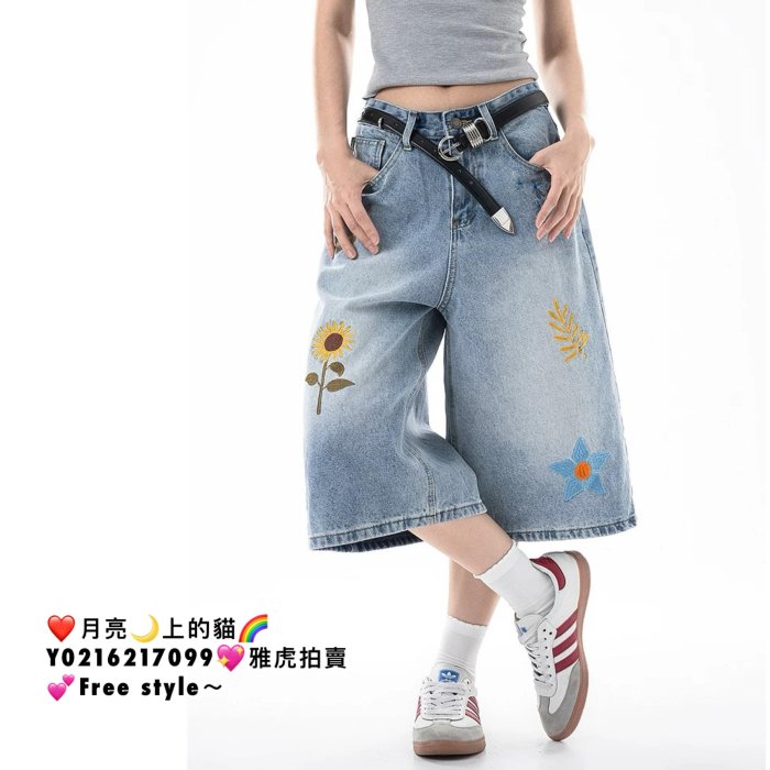 優寶購物《ubao.Tw》特貨品商城,黑貓宅配,取貨付款,❤月亮上的貓❤絕美輕鬆出街~上身超有型や夏の百搭時尚高級感水洗做舊花卉刺繡設計顯瘦舒適bf街頭風水洗牛仔闊腿七分褲 小眾潮設計情侶款男女寬鬆休閒過膝短褲 | Yahoo拍賣