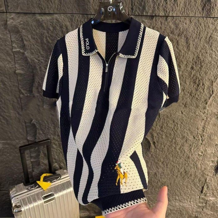 優寶購物《ubao.Tw》特貨品商城,黑貓宅配,取貨付款,條紋透氣鏤空polo衫+ 短褲🩳 男女同款 頂奢五分褲 | Yahoo拍賣