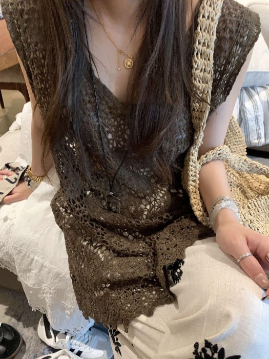 優寶購物《ubao.Tw》特貨品商城,黑貓宅配,取貨付款,. NL Select Shop . 復古手工鉤花針織背心裙 休閒寬鬆無袖V領長版上衣 | Yahoo拍賣