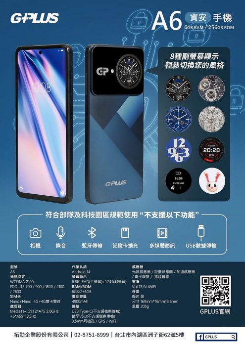 優寶購物《ubao.Tw》特貨品商城,黑貓宅配,取貨付款,公司貨 G-PLUS A6 6G/256G 三代智慧型/無相機/資安機//部隊 科學園區專用 軍人機 台積電適用 | Yahoo拍賣