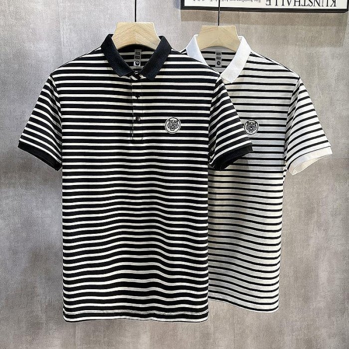 優寶購物《ubao.Tw》特貨品商城,黑貓宅配,取貨付款,Polo衫上衣男夏季冰絲短袖刺繡條紋翻領修身韓版 | Yahoo拍賣