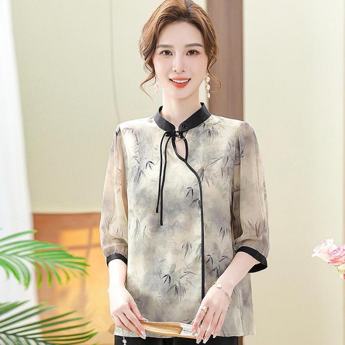 優寶購物《ubao.Tw》特貨品商城,黑貓宅配,取貨付款,2024年媽媽夏季雪紡上衣國風中老年女洋氣中老年女夏裝新中式襯衫 | Yahoo拍賣