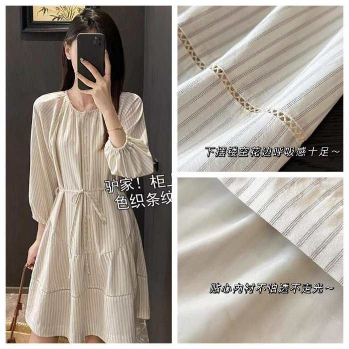 優寶購物《ubao.Tw》特貨品商城,黑貓宅配,取貨付款,夏新款 棉條紋襯衫裙繫帶收腰泡泡袖氣質洋裝 [Classique*真經典] 071005 | Yahoo拍賣