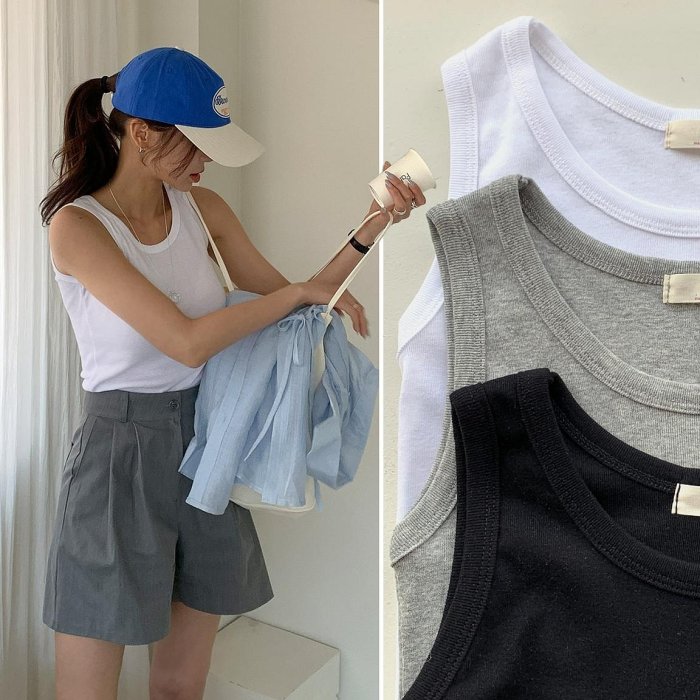 優寶購物《ubao.Tw》特貨品商城,黑貓宅配,取貨付款,正韓【XX】買一送一女生基本款棉質背心 乳白 灰 黑【07.10】Carrie Lee東大門-M15710 | Yahoo拍賣
