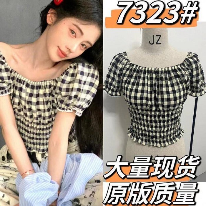 優寶購物《ubao.Tw》特貨品商城,黑貓宅配,取貨付款,【精品】鞠婧禕衣服格紋襯衫女一字領露肩顯瘦設計感小眾夏季上衣休閒 | Yahoo拍賣
