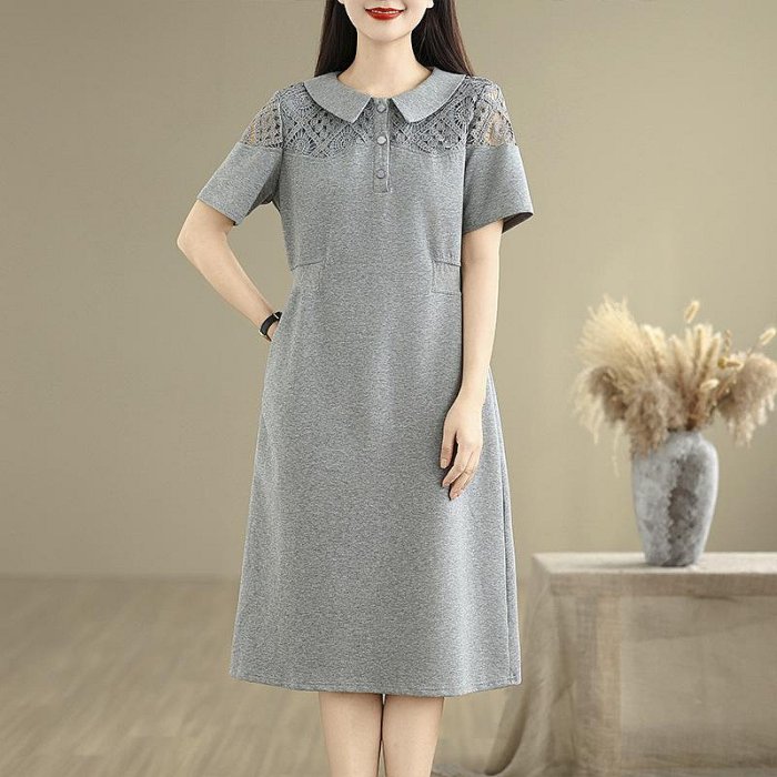優寶購物《ubao.Tw》特貨品商城,黑貓宅配,取貨付款,實拍寬松透氣鏤空大碼蕾絲拼接中長款裙子氣質顯瘦減齡新款連衣裙 連身裙/洋裝/連衣裙/短袖洋裝 | Yahoo拍賣