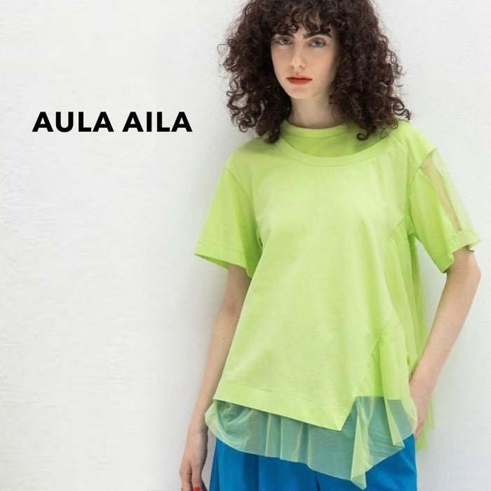優寶購物《ubao.Tw》特貨品商城,黑貓宅配,取貨付款,(R109) SHINY SPO 獨家代理日本設計師品牌AULA AILA 異材質拼接透膚網紗不規則不對稱下襬造型上衣短袖T恤 | Yahoo拍賣