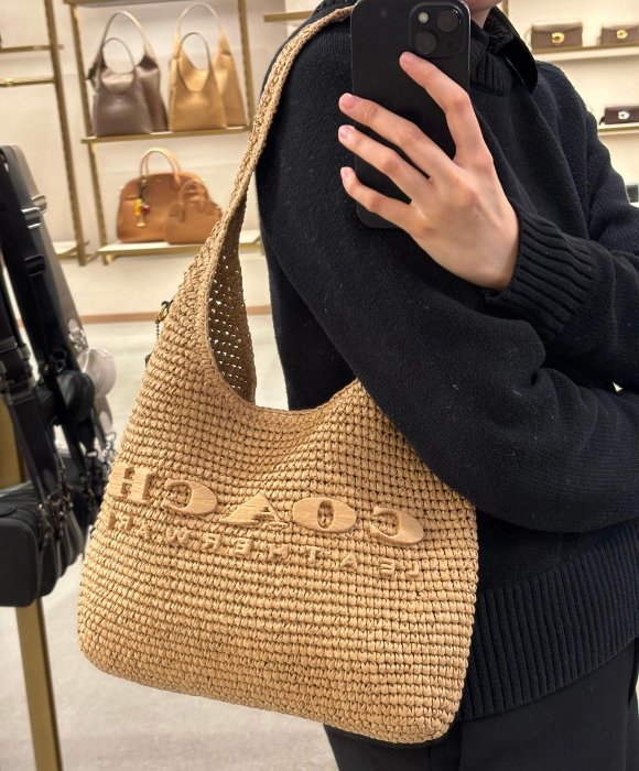 優寶購物《ubao.Tw》特貨品商城,黑貓宅配,取貨付款,空姐Outlet代購 全新 Coach CAL97 蔻馳新款Brooklyn28草編女士托特包 腋下包 天然拉菲草 水桶包 腋下手提包 容量大 附購證 | Yahoo拍賣