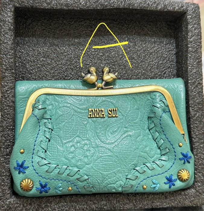 優寶購物《ubao.Tw》特貨品商城,黑貓宅配,取貨付款,2手 ANNA SUI 安娜蘇 超美藍綠色 日式花紋鋼印 花朵鳥語 斷貨款 皮夾短夾中夾 零錢包 口金二つ折り財布 | Yahoo拍賣