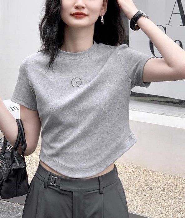 優寶購物《ubao.Tw》特貨品商城,黑貓宅配,取貨付款,小V特賣館~ 甜辣修身俏麗短版T恤 MO 新款 造型感圓弧下擺 女の百搭灰正肩辣妹上衣 2色 (U2021) | Yahoo拍賣