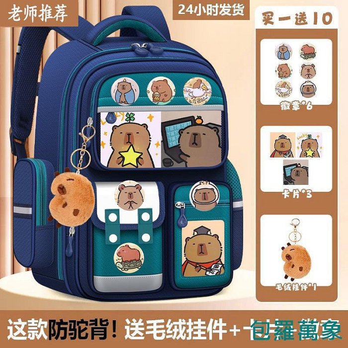 優寶購物《ubao.Tw》特貨品商城,黑貓宅配,取貨付款,國小書包-22503 新品 直髮 卡皮巴拉兒童減負小學生書包大容量一二三水豚後背包護脊女孩背包 爆款 | Yahoo拍賣