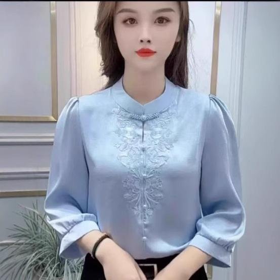 優寶購物《ubao.Tw》特貨品商城,黑貓宅配,取貨付款,一件代發直播爆款2025夏季新款新中式盤扣小衫立領刺繡純色襯衫女 | Yahoo拍賣