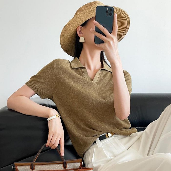 優寶購物《ubao.Tw》特貨品商城,黑貓宅配,取貨付款,翻領萊賽爾亞麻短袖針織衫女 經典老錢風~Polo領高級簡約T卹上衣【TV29677】台北薇安 | Yahoo拍賣