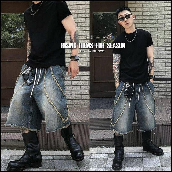優寶購物《ubao.Tw》特貨品商城,黑貓宅配,取貨付款,。R.C。NOIR.正韓概念款!! 不修邊抽鬚.弧線解構造型.古著藍.伸縮腰.過膝擴腿剪裁牛仔短褲.GD!!~下殺680 | Yahoo拍賣