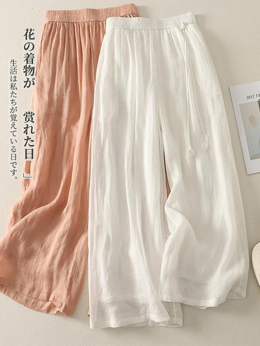 優寶購物《ubao.Tw》特貨品商城,黑貓宅配,取貨付款,寬松慵懶風闊腿褲女超夯新款夏季新中式國風高腰薄款休閑褲裙顯瘦 | Yahoo拍賣